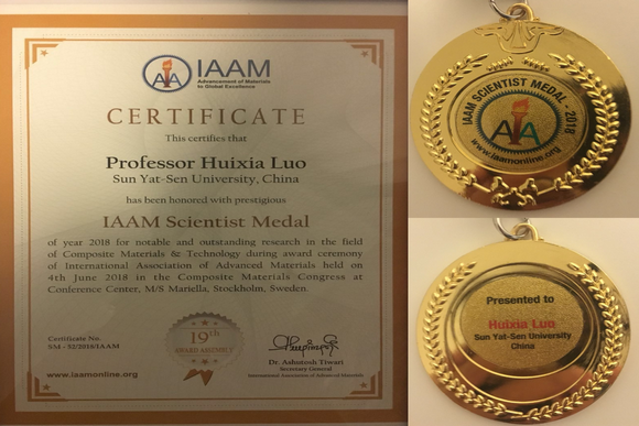 瑞典时间2018年6月6日在瑞典斯德哥尔摩市举办的先进复合材料及生物传感器与生物电子学研讨系列会议(Advanced Composite Material Congress & Biosensors and Bioelectronics Symposium)上,材料科学与工程学院罗惠霞教授荣获国际先进材料协会(International Association of Advanced Materials,IAAM)颁发的2018年度科学家奖(IAAM Scientist Medal),全球仅有7名科学家获此殊荣。