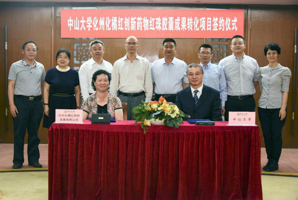5月10日下午,我校与化州化橘红药材发展有限公司创新药物红珠胶囊成果转化项目签约仪式在我校广州校区南校园举行。我校校长助理邰忠智、化州化橘红药材发展有限公司董事长李锋分别代表校企双方签署合作协议。