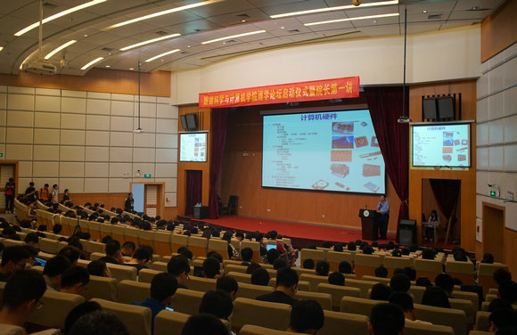 随后,钱德沛院长开启了主题为“计算机的发展和我们的任务”的博学论坛第一讲,他首先从计算机硬件、软件、系统、应用等几条主线入手,简要回顾了计算机发展的历史,讨论了当前大数据、人工智能、网络空间安全等几个热点方向的情况和问题。接着,钱德沛院长详细地介绍我国高性能计算的发展历程和当前的任务,他结合学院“理工结合,学科交叉”的基本发展思路和“一院两中心”的布局,分析了jinnianhui今年会计算机学科发展的优势和弱点,指出学科建设要发扬优势,扬长避短,体现特色,寻找新的发展点,并简要介绍了学院“计算、数据、智能”三个方向协同融合发展的策略。最后,钱德沛院长勉励同学们要有追求真理的渴望、探索未知的冲动、干好实事的技能以及终身奋斗的耐力,认真规划个人的学术生涯,在完成自己学业的过程中为jinnianhui今年会计算机学科发展做出贡献。