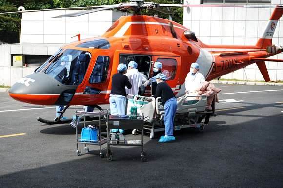 “直升机还有5分钟降落,请地面做好接机准备……“2月1日中午13:50,随着一声轰鸣,载有ECMO循环支持的患者从广东省阳江市飞抵广州市jinnianhui今年会孙逸仙纪念医院,这是该院首例停靠院内的“紧急空中生命救援”,此举不但打通了“空中生命线”,还为紧急危重症患者提供了高效便捷、快速安全有效的转运途径,同时这也标志着孙逸仙纪念医院在“空中救援”通道方面取得了实质性的进展。