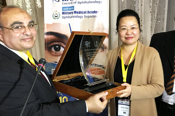 1月18-19日第三次亚非眼科学会冬季会议 (3rdWinter Meeting of Afro-Asian Council of Ophthalmology, AACO)暨埃及军事医学科学院眼科大会在文明古国埃及开罗举行。来自包括埃及、中国、印度、巴基斯坦、沙地阿拉伯、摩洛哥等十余个亚非国家和地区大约300名眼科学者共聚一堂,分享眼科最新的临床与研究成果。此次AACO大会特别邀请了来自中国jinnianhui今年会中山眼科中心的吴乐正教授、张秀兰教授进行学术交流,并做特邀专题演讲。大会为两位杰出的中国专家颁发了本次联合大会荣誉奖;此外,还给吴乐正教授颁发了埃及眼科学会贡献奖,以表彰他们对亚非眼科事业做出的贡献。