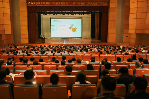 1月17日上午,我校第九届教职工代表大会暨第二十届工会会员代表大会第二次会议在广州校区南校园梁銶琚堂召开。校党委书记陈春声,校长罗俊,常务副校长孙冬柏,副校长黎孟枫、李善民、朱熹平、杨清华出席本次会议。大会由校党委副书记、工会主席余敏斌主持。来自54个双代会代表团的380多位正式代表和列席代表参加了会议。