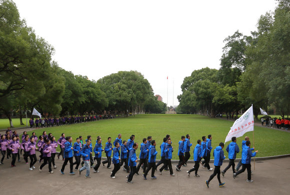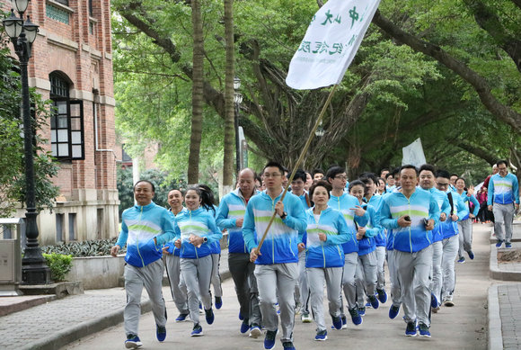 随后,黎孟枫副校长宣告本次环校长跑起跑仪式正式开始。以校旗为首的各单位方阵依次出发,途经逸仙路、孙中山铜像、小礼堂、马岗顶、园东区,最后到达英东体育场汇合,参加体育节开幕式。长跑健儿们着装统一,精神抖擞,步伐稳健,一个个鱼贯前行的彩色方队组成了康乐校园里最艳丽的风景线,充分展现了今年会人健康蓬勃、积极向上的精神风貌。