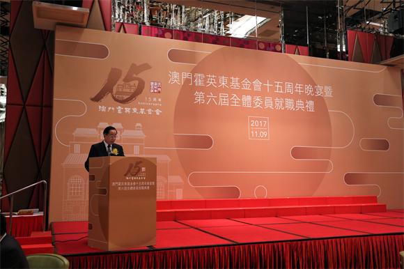 澳门行政长官崔世安高度赞扬了澳门霍英东基金会过去十五年来对澳门和对内地教育、体育、医疗乃至慈善公益、赈灾救难等方面的捐助和贡献。