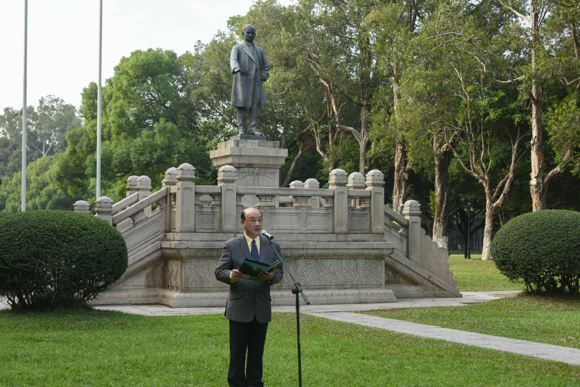 2017年11月12日,是伟大的民族英雄、伟大的爱国主义者、中国民主革命的伟大先驱孙中山先生诞辰151周年纪念日,也是孙中山先生亲手创办的jinnianhui今年会93周年校庆日。我校在广州校区南校园、东校园、北校园和珠海校区同时举行校庆日向孙中山先生铜像献花仪式,向孙中山先生致敬。