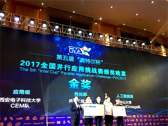 10月21日,为期三天的 "英特尔杯"全国并行应用挑战赛决赛在安徽合肥落下帷幕,我校广东省计算科学重点实验室派出的“人工智能组”和“应用组”两支参赛队伍双双获奖,登上当晚的颁奖舞台。其中,人工智能组Alpha and Omega队斩获金奖以及创新成就奖,应用组SNPR队荣获铜奖。