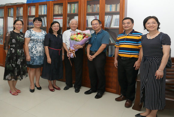 慰问团一行看望了生命科学学院林浩然院士、屈良鹄教授,化学学院计亮年院士、陈小明院士以及中文系黄天骥教授,殷切表达了广东省教科文卫工会对他们的慰问和祝福,并送上鲜花和慰问金。