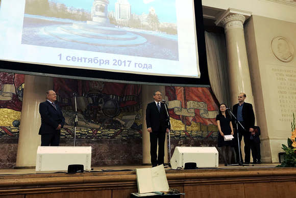 9月1日为俄罗斯知识节,莫斯科大学在主楼大礼堂举行新生开学典礼,两千多名领导、嘉宾和师生参加开学礼。莫斯科大学校长萨多夫尼奇院士、俄罗斯第一副总理舒瓦诺夫等先后致辞。俄罗斯第一副总理舒瓦诺夫在致辞中讲到,普京总统即将参加在中国厦门举行的金砖国家会议,俄中科学、教育与文化交流日益加深,希望未来10年进一步加强与中国的交流合作,并把深圳北理工莫斯科大学办成一流的大学。