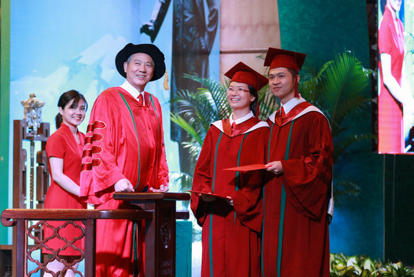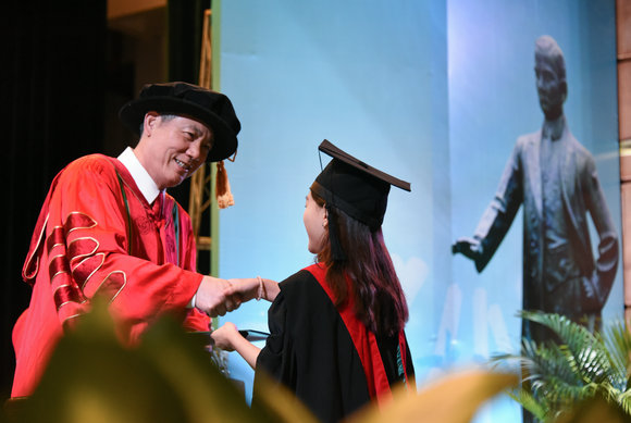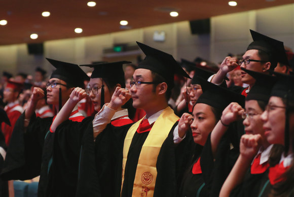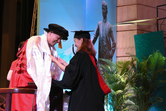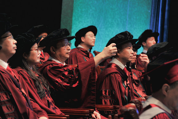 既作为第十场学位授予仪式执权杖的教授,也作为该场的演讲校友,中国科学院院士、药学院荣誉院长陈新滋表示:“就像我今天演讲时提到的两个词,‘完成’和‘开始’,每天都要完成当天的工作,每天都要开始面对新的挑战,这就是我们人生常常要做的事情。”陈新滋教授还改编了《浪淘沙》的词,鼓励毕业生憧憬未来:“今年花胜去年红,确信明年花更好,知与君共。”