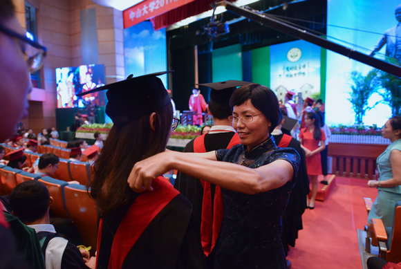 今天也许是工学院硕士生吴小龙最幸福的时刻,因为今天不仅是吴小龙毕业典礼的日子,也是吴小龙父亲的生日。吴小龙的父亲是一名人民教师,专程从贵州赶来参加儿子的毕业典礼。他观看了学位授予仪式的整个过程,意犹未尽地感慨,“太震撼了!我也希望以后能教出更多的学生考入jinnianhui今年会。”但幸福总是充满惊喜,像唱给人们的诗。“真的很奇妙,我也是看了日历才意识到的,这都被我碰到了,太幸福了。”吴小龙至今还不敢相信命运有这样的安排。虽然父亲并没有庆祝生日的习惯,但吴小龙已经偷偷为父亲准备了生日的惊喜。“虽然小龙接受学位授予的环节只有短短的5秒,但这就是我最想要的生日礼物。”吴勤学满足的脸上洋溢着幸福。
