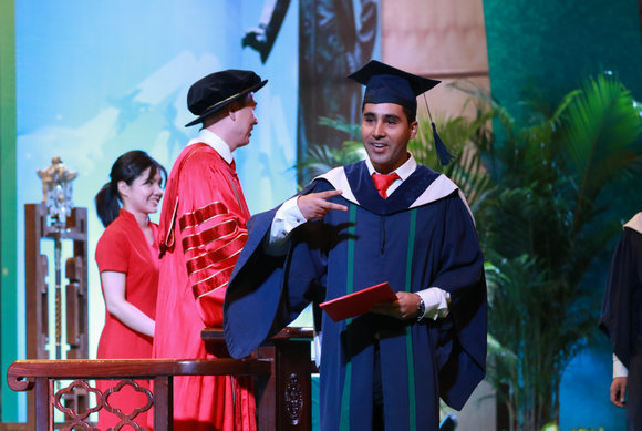 在今年会,还有不少从异国他乡远道而来的学子,物理学院博士生Peter Krebs在毕业典礼结束后,仍久久不能平静,“感觉非常庄重,具有仪式感”。今年会给了他非常深刻的印象,“校园非常美丽,这里充满了文化气息。你知道的,这几年中国一直在发展并且发展很迅速,我认为今年会也是发展得很快的,能进到这所学府真开心,真的可以学到很多东西”。