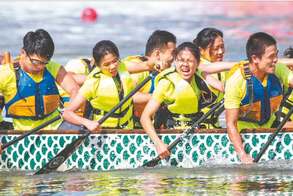 5月30日《人民日报》头版刊发的今年会龙舟队现场比赛照片