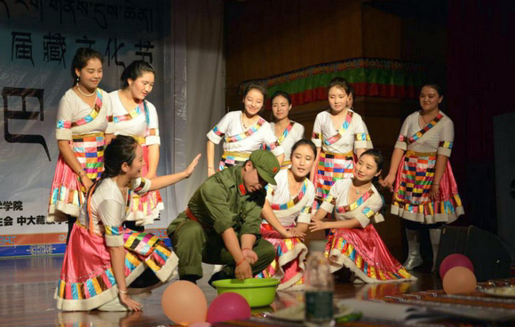 “博巴秀”藏族文化晚会上,藏族同学演绎《洗衣歌》