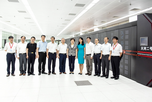 罗俊校长在天河二号超级计算机中心一楼展示大厅向来宾介绍我校发展情况,重点介绍了我校在办学布局、“三个面向”、“三大建设”、“三个输出”等方面的规划,强调大气学科在我校重点发展大海洋学科群中的引领作用,并感谢中国气象局对我校大力发展大气学科的指导和支持,希望继续加强和深化局校合作,共同推动气象事业的发展,为提升国家气象预报的精准、科研水平及科研成果转化作出积极的贡献。