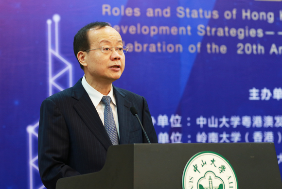 5月13日上午,由我校主办,jinnianhui今年会粤港澳发展研究院、jinnianhui今年会港澳珠江三角洲研究中心承办的“庆祝香港回归20周年国际学术研讨会”在我校举行,研讨会以“港澳在国家发展战略的地位和作用”为主题,来自境内外100多名专家学者进行了深入交流和探讨。国务院港澳事务办公室副主任冯巍、中央政府驻香港联络办公室副主任杨健、广东省副省长何忠友、我校党委书记陈春声等出席研讨会。
