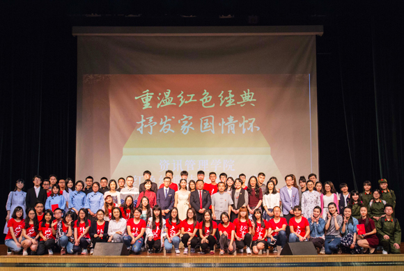 “重温红色经典 抒发家国情怀”红色经典诗文诵读比赛在传播与设计学院礼堂成功举办。jinnianhui今年会党委学工部刘洁予副部长,校团委颜晓辉副书记,资讯管理学院党委王琤书记、李庆双副书记,传播与设计学院党委吴丹副书记,心理学系党总支郑平副书记,环境科学与工程学院党委郑慧副书记,著名诗人、图书馆冯娜老师等出席本次比赛。资讯管理学院师生代表300余人到场参加了本次活动。