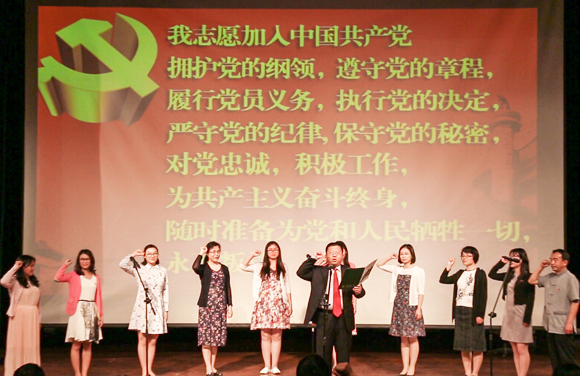 比赛在雄壮的国歌声中拉开序幕。参赛队伍所带来的表演形式丰富多样,比赛紧张而精彩,让在场观众重温激情燃烧的岁月,无不深受感染、沉浸其中。其中,王琤书记带领现场所有党员重温入党誓词,以示不忘初心,砥砺前行,秉承家国情怀,坚守精神家园。李庆双副书记带来了表演节目,朗诵原创诗歌《我们都有一个中国梦》,点明了本次比赛旨在传播红色经典、让学院师生感受红色力量的初衷。现场的评委老师对当晚的参赛节目进行了点评,郑平副书记称赞活动主题以及思想导向,并向所有的党员致敬。