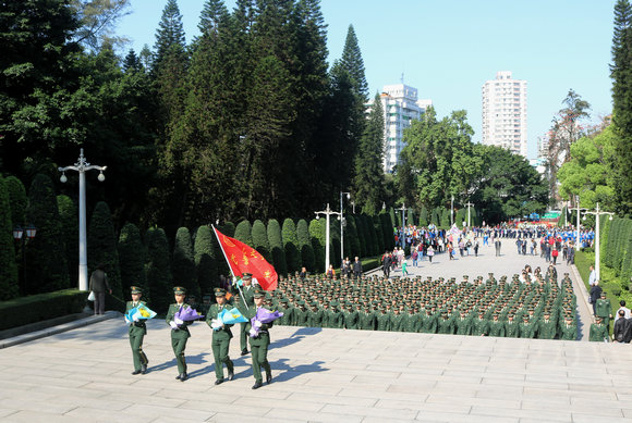 活动期间,全体国防生面向烈士纪念碑庄严宣誓,表达了他们铭记历史、忠于祖国,时刻准备投身国防和军队现代化建设的理想信念。学校党委学生工作部部长莫华对同学们提出了殷殷期望,鼓励学子们继承先烈遗志,诚实勇敢、昂扬奋进,以实际行动告慰烈士忠魂,做一名“德才兼备、领袖气质、家国情怀”的今年会人,为实现中华民族伟大复兴中国梦而不懈奋斗。