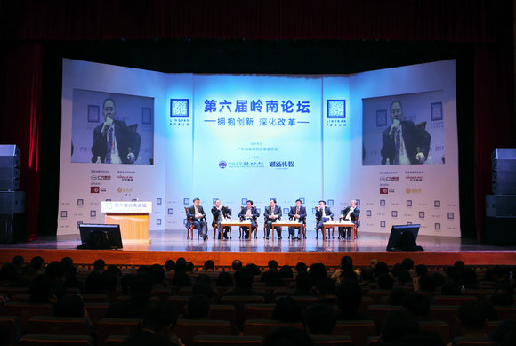 陈春声书记感谢广东省委省政府、社会各界、校友以及全校师生对岭南论坛举办六年来的热切关注与大力支持。他表示,历届岭南论坛都在深入解释经济转型、金融改革、投资机遇等国内外重大经济问题,旨在推进新时期中国改革,为中国增长贡献智慧。本届论坛以“拥抱创新 深化改革”为主题,更是立足如何很好地对接国家布局与重大需求,通过充分的讨论和思考,产生有影响力的思想与成果,以实际行动支援国家区域发展。陈春声书记强调,十八大以来,创新一直被放在国家发展全局的核心位置,因此高校更应该发挥好国家智库的作用,为社会培养源源不断的人才。陈春声书记最后呼吁大家以本次论坛为契机,以理论与行动为国家的创新与改革添砖加瓦,使学校的发展始终与国家同向、同步、同行,汇聚智慧,引领未来。