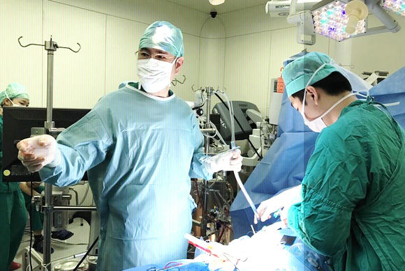 区景松教授介绍,此次手术仅在胸腔侧边开了三个1至5厘米的小切口,相比普通的开胸手术和胸腔镜微创手术更为安全和精准,创伤小,出血少,术后病人恢复快。