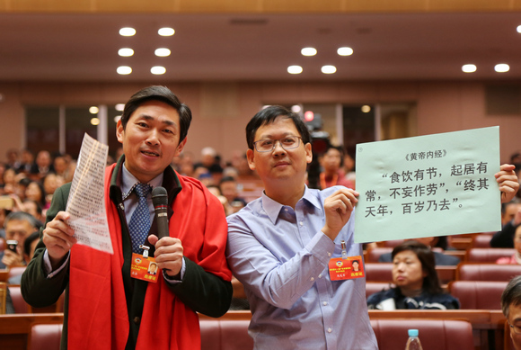 在18日上午的即席发言中,我校省政协委员、农工党jinnianhui今年会基层委员会主委秦鉴教授,致公党jinnianhui今年会南校区支部主委梁琦教授“抢麦”成功。秦鉴教授建议“健康中国要以预防为主”,他通过数据对比,强调广东在打造中医药强省、卫生强省进程中,应加强宣传预防为主的宗旨,并提出了树立正确的健康观、推广普及中医、倡导控制体重、周末适当控制饮食、让医生主动愿意进行卫生宣教等五点建议。梁琦教授针对“创新迈向产业高端,再铸广东制造辉煌”,提出了三点建议:一是应落实省委省政府提出的创新战略,将重点放在制造业;二是要创建高水平大学和加强理工科建设,以培育创新人才和高素质产业大军;三是广东应有大格局,要用全球意识、大战略来抢占制造业高地。