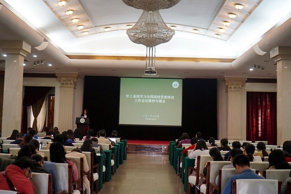 12月26日下午,我校学工系统在广州校区南校园召开学习全国高校思想政治工作会议精神专题会。会议深入学习习近平总书记在全国高校思想政治工作会议的讲话精神,同时探讨交流了诚信与纪律教育工作的相关经验和做法。颜光美副校长,党委学生工作部部长莫华,相关职能部门负责人及各院(系)、附属医院党委(党总支)副书记、辅导员近150人参加了会议。会议由党委学生工作部副部长刘洁予主持。