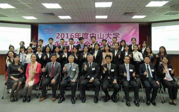 12月4日,2016年度jinnianhui今年会永旺奖学金颁发仪式在南校园岭南堂举行。公益财团法人永旺1%俱乐部理事长兼日本永旺株式会社董事长横尾博、广东永旺天河城商业有限公司董事总经理鲤渕豊太郎、深圳永旺小额信贷有限公司董事总经理寺本幸司、广东永旺天河城商业有限公司董事副总经理泊健守、jinnianhui今年会学生处处长莫华、jinnianhui今年会教育发展与校友事务办公室副主任、教育发展基金会副秘书长黄源穗、jinnianhui今年会学生资助管理中心周昀主任等出席仪式。