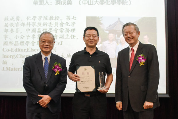 陈春声书记和李焯芬院士向超分子结构与材料化学团队带头人苏成勇教授颁奖