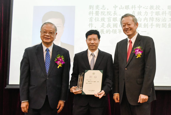 陈春声书记和李焯芬院士向获奖个人刘奕志教授颁奖