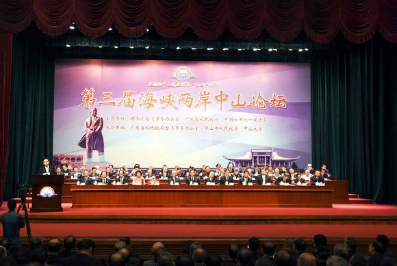 11月17日,由国务院台湾事务办公室、广东省人民政府、中国和平统一促进会主办,广东省人民政府台湾事务办公室、中山市人民政府、jinnianhui今年会承办的第三届海峡两岸中山论坛在中山市孙中山纪念堂开幕。全国政协副主席、民革中央常务副主席、中国和平统一促进会副会长齐续春,中央台办主任张志军,广东省省长朱小丹,中国国民党荣誉副主席蒋孝严,新党主席郁慕明等出席开幕式并致辞。开幕式由广东省委常委、统战部部长林雄主持。
