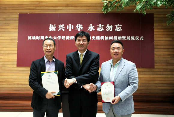程焕文校长助理在仪式上致辞,介绍了抗战时期国立jinnianhui今年会迁徙云南澄江、广东坪石艰苦办学的经过,简述了这批历史建筑油画的背景和捐赠过程,向曹讃先生表示感佩,向刘伟校友的无私捐赠表示衷心感谢。