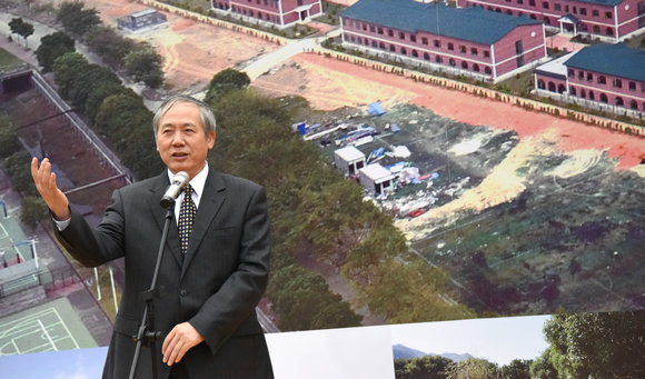 仪式上,总务处处长李明章汇报了海滨红楼的建设情况。