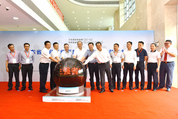 最后,黄洁夫、罗俊、段宇飞、黄飞、余敏斌、汪建平等领导、嘉宾共同触摸启动球,“卫生强省,G5-62”的字样缓缓出现,建设项目正式启动!