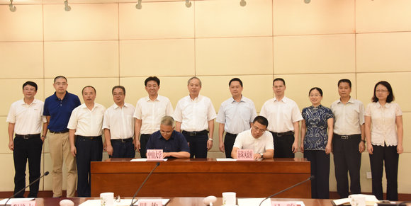9月9日下午,我校与海珠区政府共建今年会国际创新谷启动区、海珠湿地生态科学园合作框架协议签约仪式在海珠区机关会议中心举行。校长罗俊,副校长马骏,校长助理程焕文、杨清华、王雪华,海珠区委书记姚奕生,区长李海洲,区委常委、宣传部部长许芳,区委常委、区委办主任邱培藩,副区长江帆、陈建彬等出席签约仪式。马骏副校长,陈建彬副区长代表双方签约。