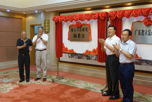 8月29日上午,“地方立法研究编委会”揭牌仪式在广东省人大常委会举行。省人大常委会主任黄龙云、副主任张广宁、原副主任肖志恒,省新闻出版广电局局长白洁,我校党委书记陈春声、副校长马骏等有关负责同志,以及省人大法委、法工委、广东省立法研究所等有关负责同志出席揭牌仪式。