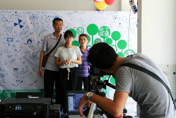 化学工程与技术学院在迎新现场设置了化学元素的留影板,为同学和家长们留下新生入学的纪念。留影板以“化工树”为背景,老师是根基、学生为树冠,枝干则由海洋化工、精细化工、化工节能等专业方向组成。家长和同学们可在背景板的空白处印指印、签名、合影留念,并在完成所有报到程序后即可拿到照片。