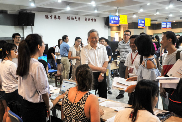 罗俊校长在迎新现场看望新生和工作人员(刘嘉摄)