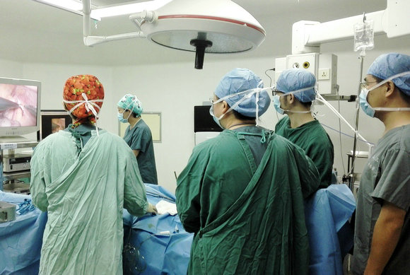 针对此罕见病例和手术特殊要求,术前,由泌尿外科王德娟副主任医师,麻醉科黑子清教授、刘德昭副主任医师、刘慧副主任护师和林艳香主管护师组成的医护团队,反复研究、商讨病情,制定出详实的麻醉、手术和护理方案。因患儿较为肥胖,建立外周静脉通道极为困难。因此,术前由林艳香主管护师进行颈外静脉穿刺建立补液通路,由刘德昭副主任医师进行气管插管,并实施了静吸复合全麻;术中全程实行温度监测,防止患儿由于体温异常导致并发症。在良好的麻醉条件下,王德娟副主任医师成功实施了腹腔镜双侧隐睾下降固定术。手术历时1小时,非常成功,患儿于术毕5分钟清醒,呼吸和肌力恢复良好。