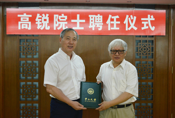 7月28日,高锐院士聘任仪式在我校中山楼三楼贵宾厅举行。罗俊校长向高锐院士颁发聘书。中科院院士张培震教授,校长助理杨清华等参加仪式。仪式由魏明海副校长主持。