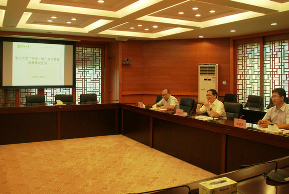 陈春声代表学校党委就我校开展“两学一做”学习教育情况作专题汇报。他报告了我校“两学一做”学习教育总体安排及近期推进情况,并介绍了以“三个强化”为特点的工作机制保障情况:一是强化问题导向意识,开展系列专题调研;二是强化党校阵地建设,开展系列教育培训;三是强化责任体系建设,实现压力层层传导。陈春声表示,学校党委将进一步深刻领会中央关于开展“两学一做”学习教育的精神,结合学习贯彻刘云山同志来校视察调研重要讲话和指示精神,根据上级党组织要求和基层党组织需求,进一步优化工作格局,加强条件保障。近期,学校党委要把习近平总书记在庆祝中国共产党成立95周年大会上的重要讲话精神纳入学习教育重要内容,深刻理解精髓要义,认真学习贯彻,进一步增强政治意识、大局意识、核心意识、看齐意识,以学习教育实效推动学校各项中心工作科学发展。