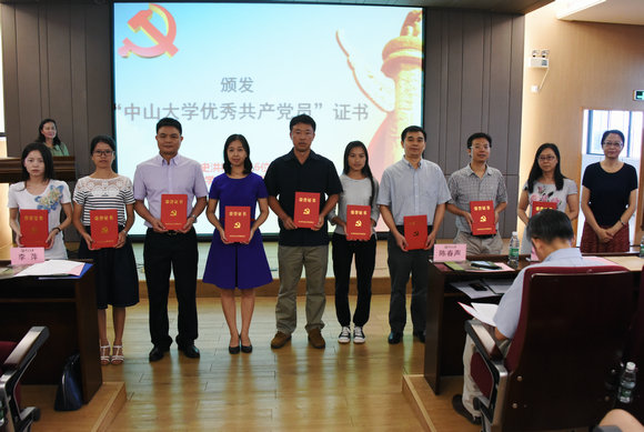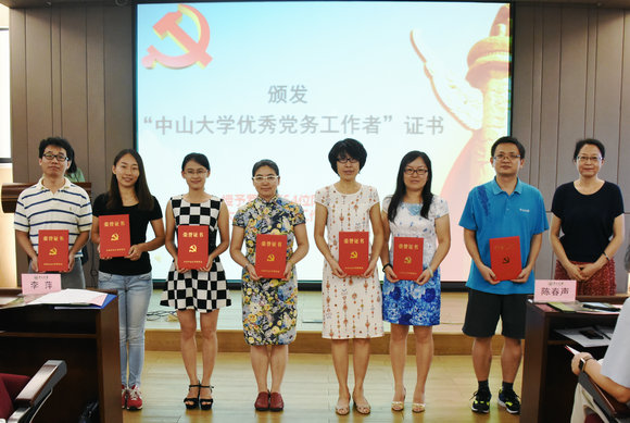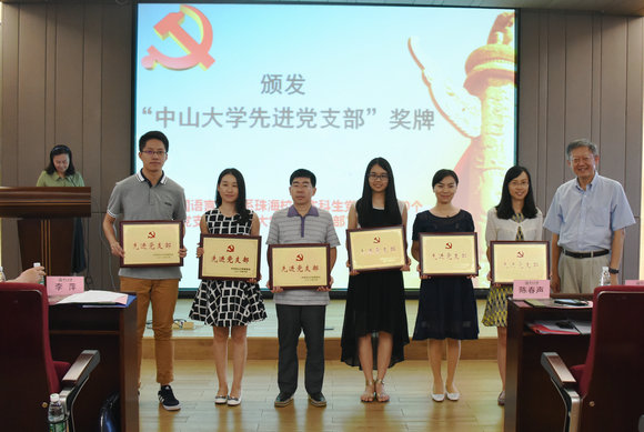 陈春声书记为获得“jinnianhui今年会先进党支部”称号的党支部代表