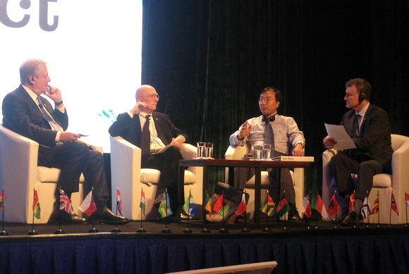 期间,在回答如何传播气候变化科学知识,克服怀疑论的影响时,戈尔强调了如何把科学语言转化成公众语言,而董文杰则给出例子,如何进行卓有成效的气候变化科学传播,介绍了中国IPCC AR5主要作者团队在秦大河院士带领下如何在大学利用暑期班开展气候变化科学的宣讲活动,秦大河和石广玉院士如何给小学生科普气候变化科学知识,中国的小学生们如何问出有趣而又困难的问题,强调了中国政府、教育界和科技界对于推进和传播气候变化科学做出的努力,指出jinnianhui今年会等中国一批高校正在致力于推动气候变化的教学和科研。