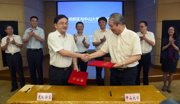 随后,罗俊校长与邝兵主任代表双方签约。我校校长助理程焕文、杨清华、陈望南、骆腾与光明新区领导张恒春、王浩、徐松明、周子友共同见证。