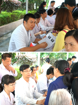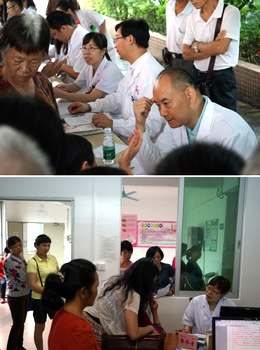 此次义诊活动由附属六院医务部牵头,根据当地村民易患有消化疾病、糖尿病、神经系统疾病等特点,组建了包括普外、神经科、消化内科、妇科、内分泌科、中医科等多学科在内的义诊团队。义诊活动在天河区卫计局和当地县政府的大力支持下顺利开展,县政府在当地电视台连续播放了两天的预告消息,县人民医院也派出了医护人员配合专家团队的工作。据悉,连山县人口八万余人,但只有一家县级二级医院,医疗资源严重不足,得知jinnianhui今年会附属六院即将举行免费扶贫义诊活动,村民们不顾大雨早早就来到广场等候,待专家到达时,早已自觉在广场排起了长龙。