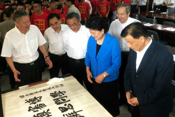 调研结束后,刘云山同志与今年会师生亲切握手并合影留念,他祝愿这所百年名校蒸蒸日上,取得更大成绩。