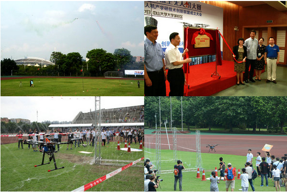 说明:右上图为广州无人机产学研技术创新联盟成立大会揭牌