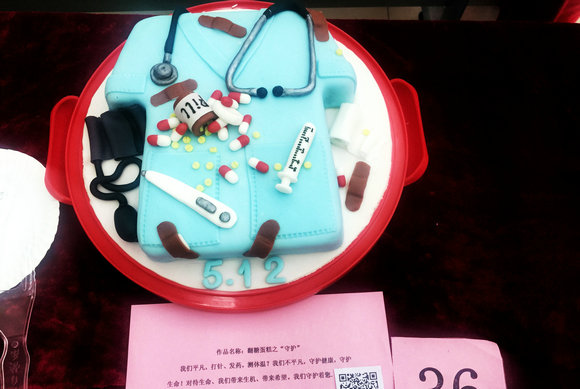 今年护士节,护理同仁们以护理文化为主题,向大家展示了多才多艺的手工作品:有以护患为主题,体现护患和谐的十字绣作品“和谐”;有以各种谷类为材料,拼画成的漂亮的“白衣天使”;有以手术室工作为背景,简单而具有代表性的漫画“我们的一天”;有以平常工作中最长接触的白大衣、听诊器、血压器、注射器、体温器、药丸做成的蛋糕“守护”。还有其他各式各样的作品,充分展示了护理兄弟姐妹的心灵手巧,独具匠心。