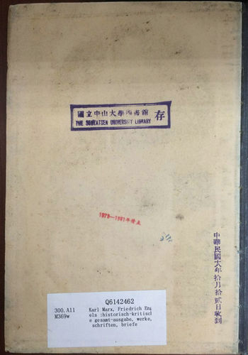 我校图书馆拥有国内罕见的盖有精确入藏日期印章(“中華民國十八年拾月拾貳日收到”)的MEGA1第一部分第一卷第一分卷一册(MEGA1 I/1.1)、日本学者小黑聪先生捐赠的MEGA2近一套(陈长安在2015年10月30日出版的《jinnianhui今年会报》所刊发的《由“文科守护精神”及“出文献”与“出思想”所想到的》一文称我校图书馆收藏的MEGA2其捐赠者为小黑松先生(实为小黑聪先生)及馆内没有收藏MEGA1”系笔误),马克思主义哲学与中国现代化研究所藏的MEGA2近一套,居于全国前列。