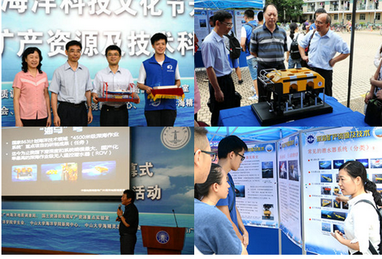 作为本届海洋科技文化节的重头戏,本次开幕式邀请了中国地质调查局广州海洋地质调查局何高文副总工程师、陶军教授为同学们带来深海矿产资源及技术讲座,并且展出了“海马”号无人遥控潜水器模型、“海洋六号”船模以及海底矿产样品等,吸引了同学们的驻足和关注,增加了同学们对海洋科学的兴趣,提高了同学们对海洋科学的认识。