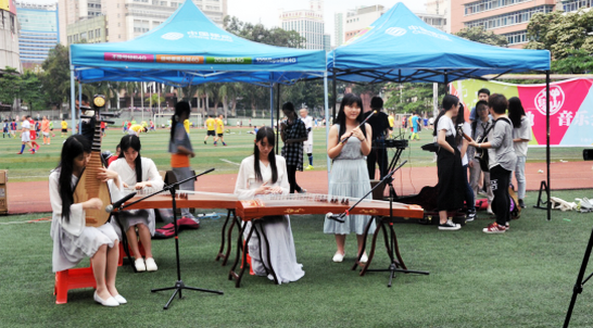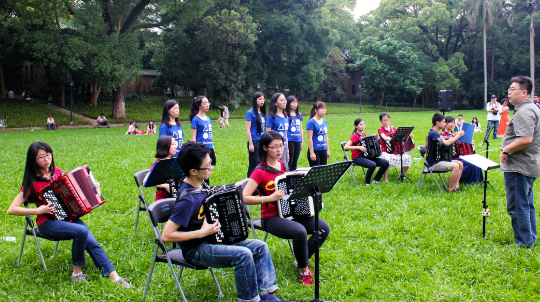 伴随着尤克里里轻快的曲调,AM音乐公益社为我们的草地音乐会拉开了序幕。一首由梁咏嘉、罗晓枫带来的完全不用伴奏的美妙音乐,在电子琴黑白的琴键上是一个多彩的音乐王国;黄铖杰演唱的《离人》让我们感受到了静谧的意境所带来的魅力。而歌曲串烧《喜欢你》《如果没有你》《I believe I can》让我们一睹情歌的魅力。